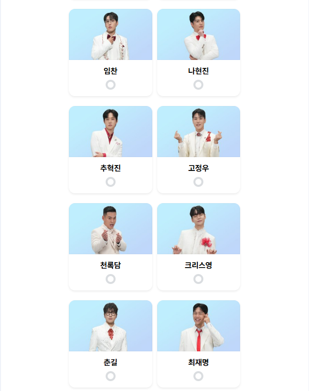 - 원하는 참가자를 선택하고 투표를 완료하시면 됩니다.